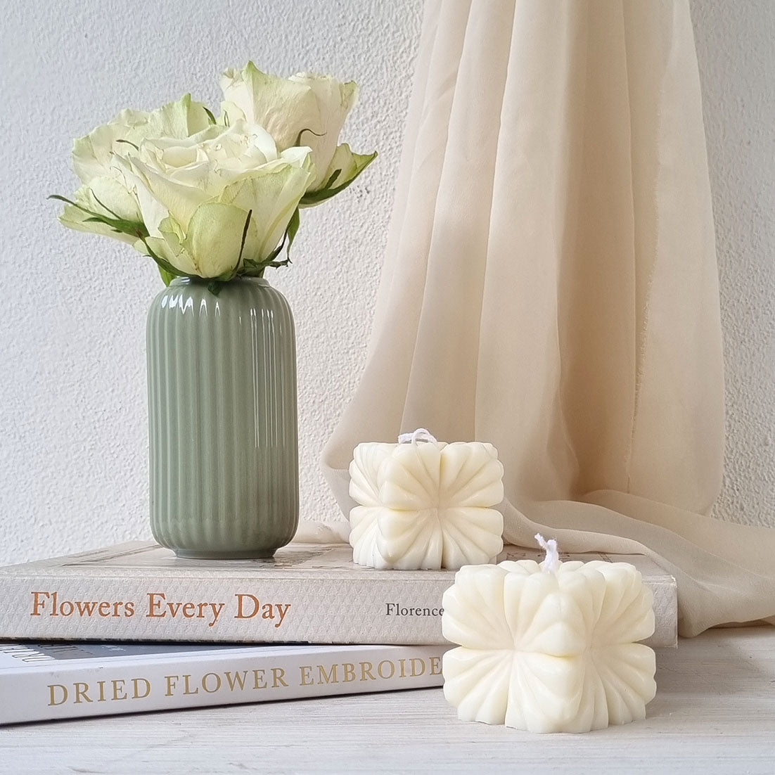 Candela Artigianale in Cera di Soia – Design Cubo Floreale