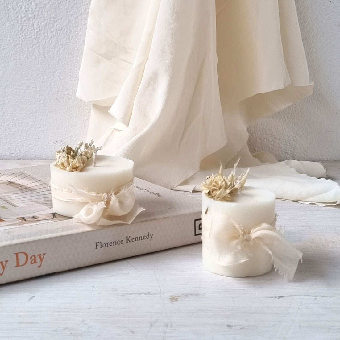 Candela in Cera di Soia con Fiori Essiccati – Candele Pillar - Profumazioni Vegane